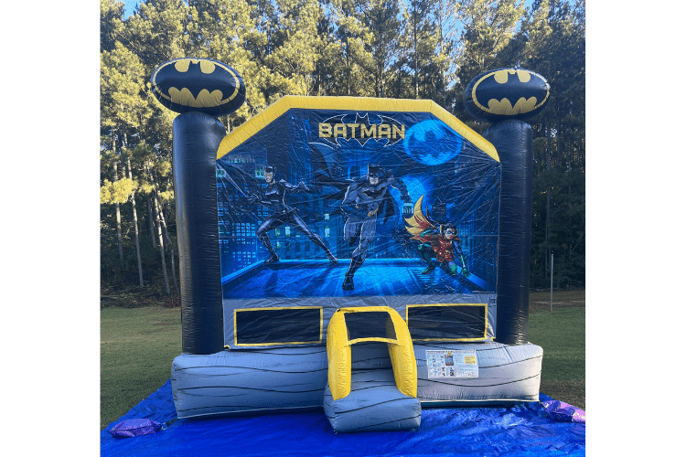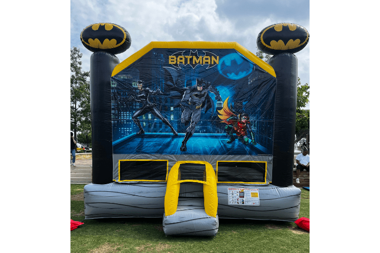 •    Heroic Design 🦇: Featuring iconic Batman graphics and colors, this bounce house transforms any event into an epic Gotham City adventure.