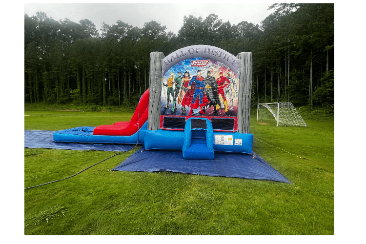 Unleash the ultimate superhero adventure at your next event with our action-packed Justice League Bounce House with Slide! Perfect for birthday parties, family gatherings, and superhero-themed events, this inflatable marvel combines the thrill of bouncing and sliding with the excitement of the Justice League. 🌟🎉