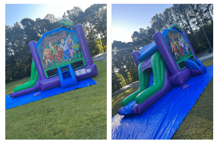 - **Scooby-Doo Theme 🐾:** Featuring vibrant graphics of Scooby-Doo and the Mystery Inc. gang, this bounce house brings the excitement of solving mysteries to life.